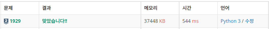 16의 약수: [1, 2, 4, 8 16] 해당 수를 살펴보면 가운데 수를 기준으로 대칭적으로 곱을 통해 16을 만들 수 있다. 이를 통해, 소수의 절반에 해당하는 제곱근까지만 살펴보면 소수 판별이 가능하다는 것을 알 수 있다. 이를 이용한 풀이입니다.